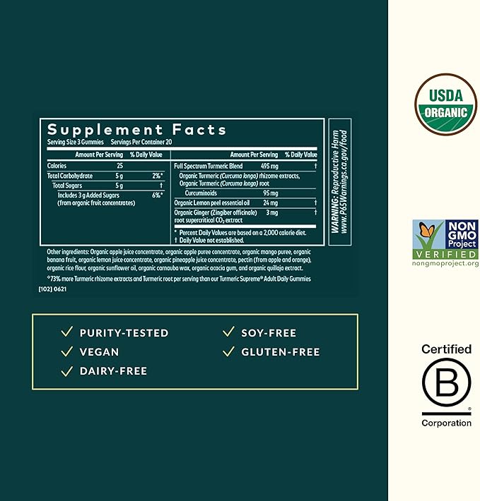 Gaia Herbs Turmeric Supreme Extra Strength Gummies - Supports Swelling Relief to Help Maintain an Active Lifestyle - Lemon Ginger Flavor - 60 Vegan Organic Gummies (20-Day Supply)