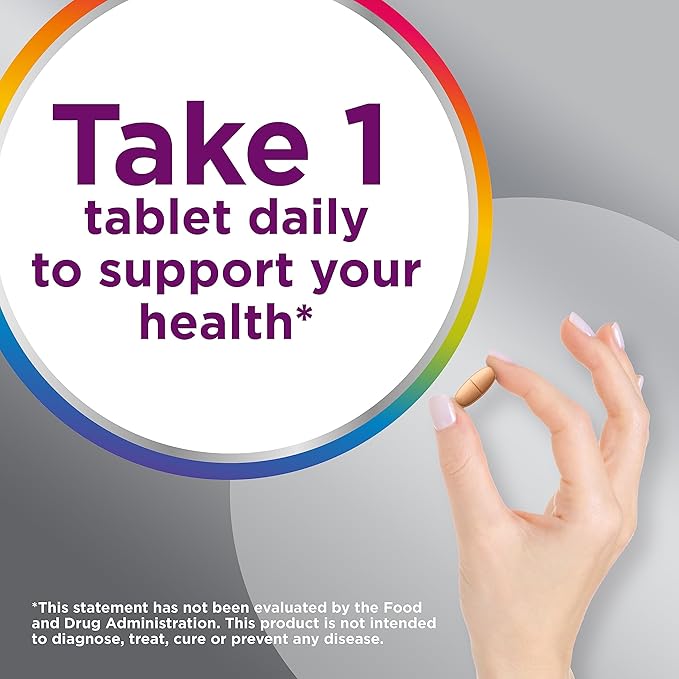 I bought this product for my dad who is getting older in age and I wanted him to start taking a multivitamin to help cover vitamins he might be missing.The tablet is small but dry, meaning there isn't a coat to help make the pill easier to swallow. If you don't have any issues swallowing pills then please disregard this but if you do have a hard time swallowing pills then I would recommend also buying a pill crusher to smash the pill into pieces and then it's alot easier to swallow that way.I spoke with my dad who has been drinking this pill for a couple of weeks now to see what he thought about it and he said he feels the same with no noticeable difference from before and now. He says he still drinks it because he knows it's important to have even if he doesn't notice a major difference.The health benefits on the label may be hard to feel it yourself because it's all internal benefits that you can't physically see. My dad says his energy level is the same and doesn't feel a boost of energy. So I'm not sure how effective it is but it's always good to have and drink. Doesn't hurt not to.I posted photos of the bottle label all around for your review so you can see if you would like it. It's always good to compare the vitamin percentages with others to see if it meets your goals.It's recommended to take this one a day with food. So my dad usually drinks a pill after having a meal.I hope this review helps you make a decision.