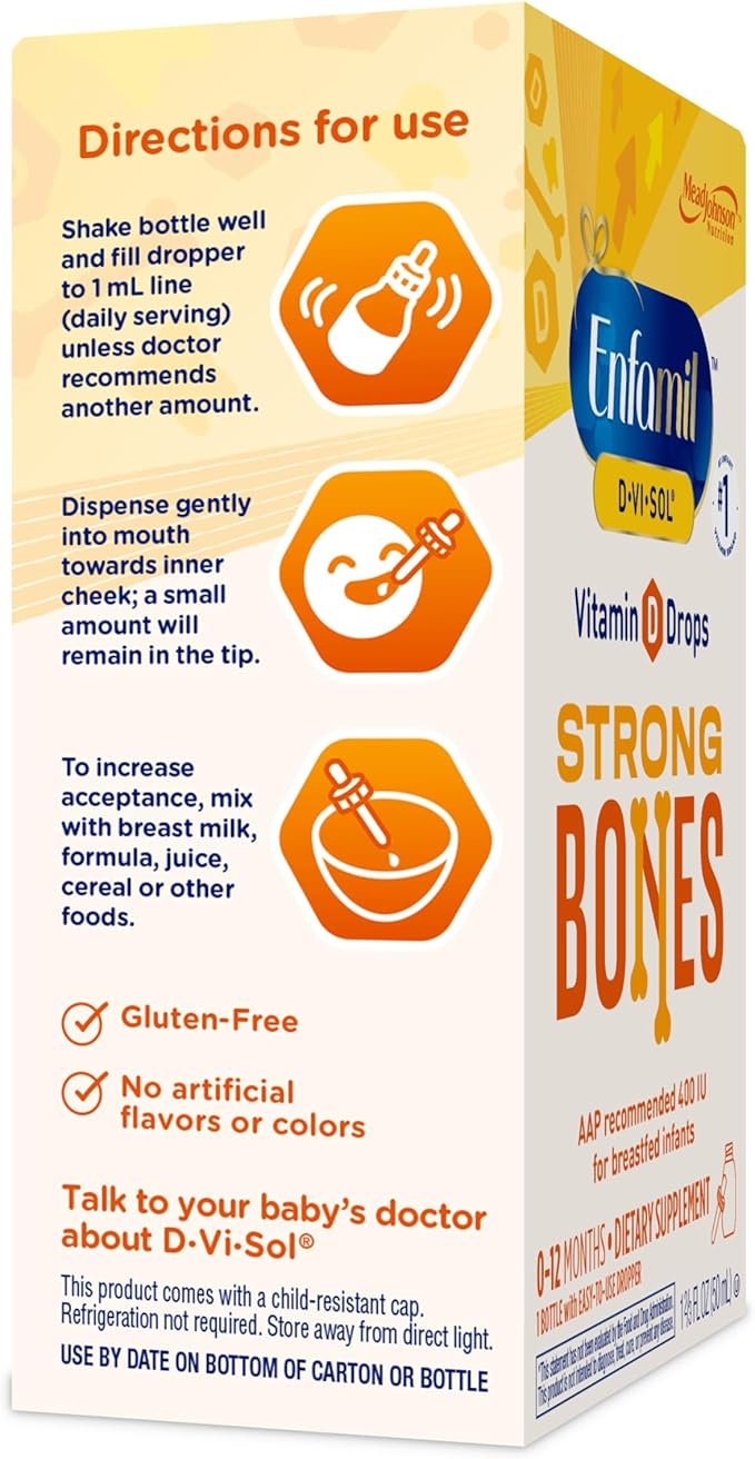 Enfamil Baby Vitamin D-Vi-Sol Vitamin D Liquid Supplement Drops for Infants, Supporting Strong Teeth & bones in Newborn Babies, Easy-to-Use, Gluten-Free, 50 mL Dropper Bottle, Pack of 3