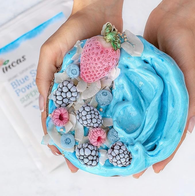 - ALL NATURAL SUPER BLUE FOOD COLORING WITH NEUTRAL TASTE ::: Incas' Organic Blue Spirulina Powder Is Perfect For A Superfood Smoothie, Smoothie Bowl, Baked Goods, Lattes, Desserts - You'll only need as little as 1/4 tsp of this Blue Spirulina Powder Organic to Naturally Color your Food with Added Health Benefits.