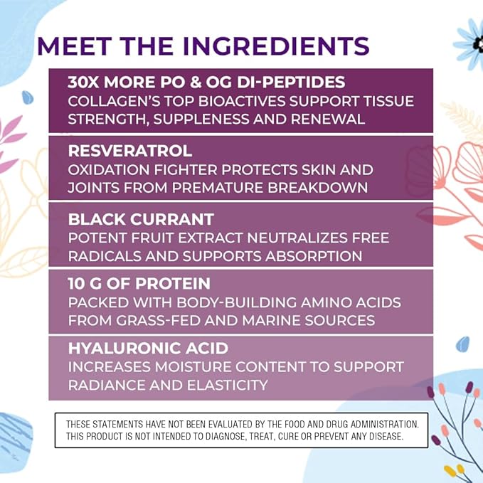 - Collagen Powder + Resveratrol Supports the Body: Advanced anti-aging Youthful Beauty Formula supports hair, skin, nails, bones, joints and decreases fine lines and wrinkles