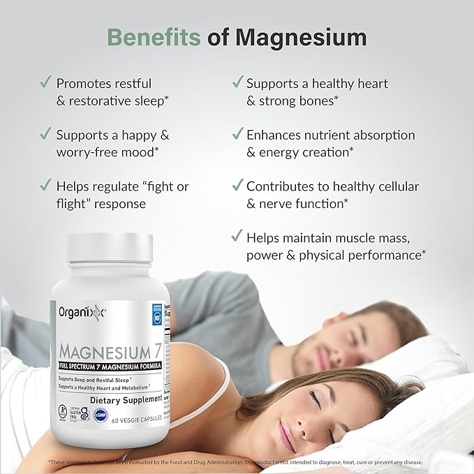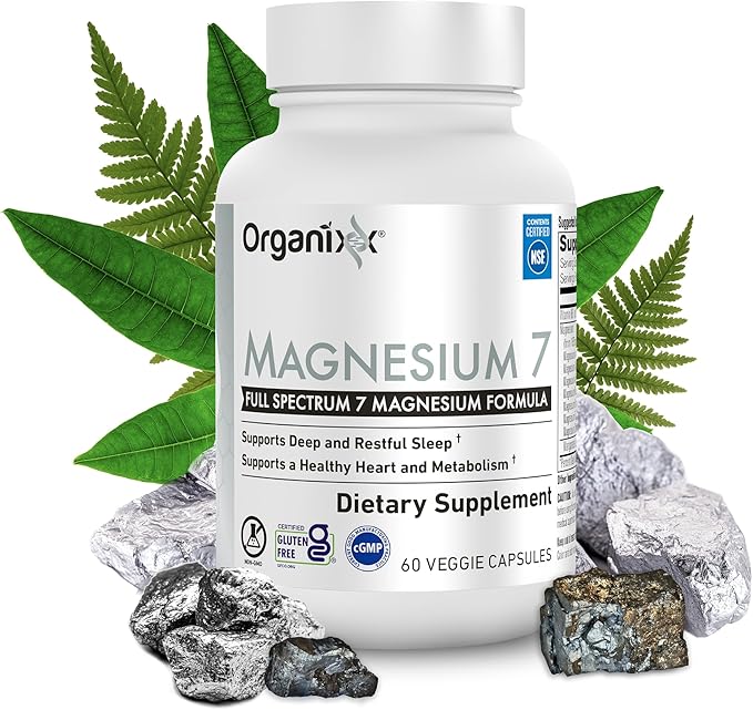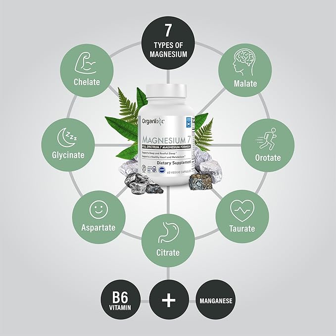 Organixx Magnesium Glycinate Supplement for Support Sleep, Muscle & Heart Health, 7 Type Magnesium Complex with Vitamin B6, Manganese Citrate, Gluten Free, Vegan, Non GMO, High Absorption, 60 Capsules