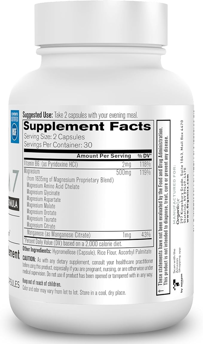 - EASY-TO-SWALLOW CAPSULES: Our magnesium supplement can be a beneficial addition to your evening routine. Simply take 2 capsules with your evening meal. Organixx magnesium capsules offer a convenient alternative to magnesium powder, perfect for those seeking an easy-to-swallow option.