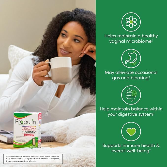 Probulin Total Care Women's Urinary Tract = Prebiotics + Probiotics + Postbiotics to Support Healthy Vaginal Microbiome - 20 Billion CFU - 12 Strains - 30 Vegan Caps (Pack of 3)