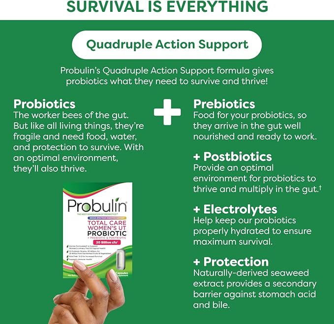- Survives The Stomach: All probiotics need protection, food and water to survive; Each Probulin capsule includes prebiotic fiber and electrolytes for food and hydration, as well as a unique seaweed barrier that protects against stomach acid