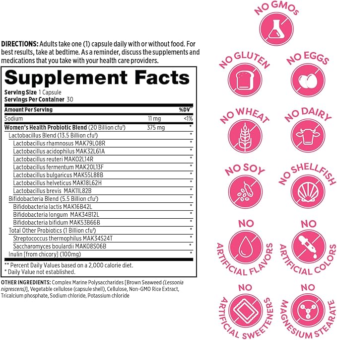 Probulin Women’s Health Probiotic + Prebiotic for Vaginal, Gut & Immune Health - 20 Billion CFU - 12 Probiotic Strains, 30 Vegan Capsules (Pack of 3)