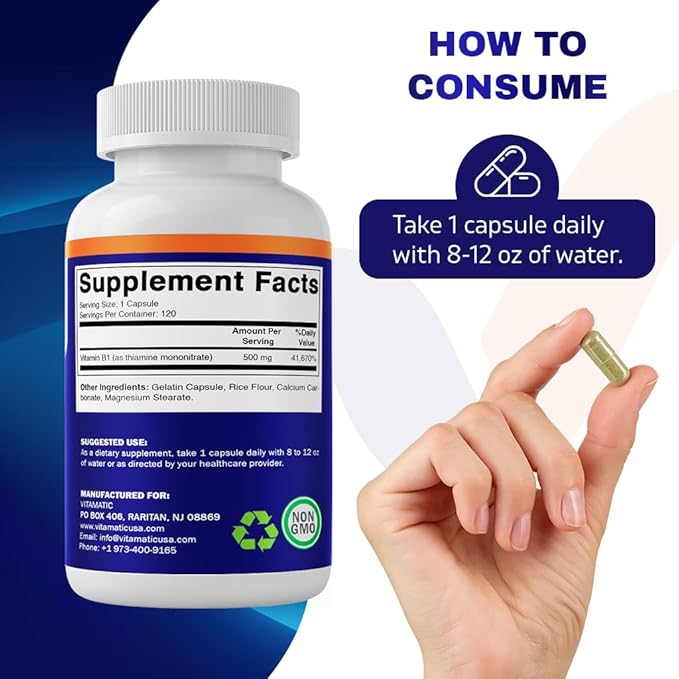 Vitamatic Vitamin B1 (Thiamine) 500mg – 2 Pack (120 Capsules Total)