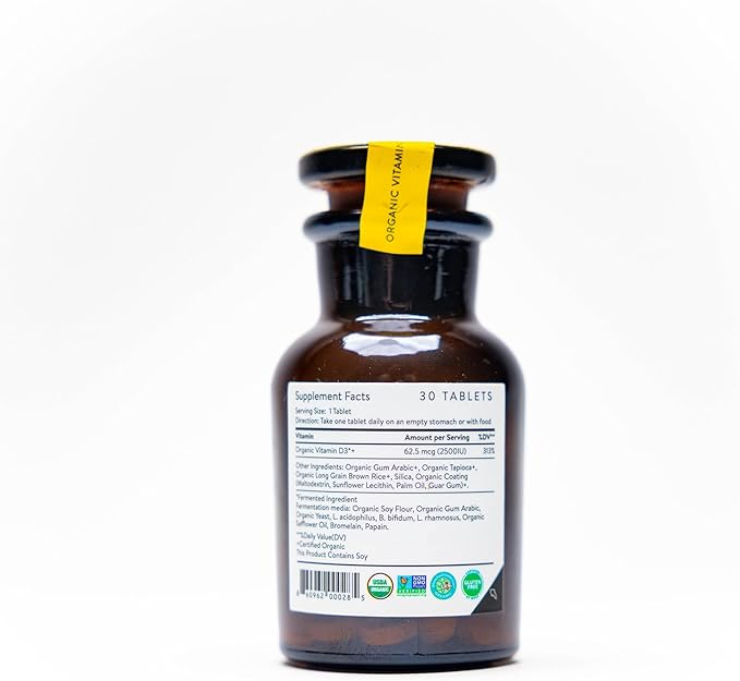 Movita Certified Organic Vitamin D3 2500IU – Supports Energy, Immune Health & Bone Strength – Fermented Whole Foods, Organic, Vegan, Gluten-Free, Non-GMO – 30-Day Supply (Glass Bottle)