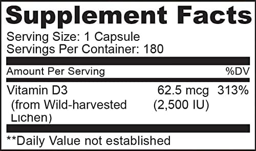 - PLANT-BASED VITAMIN D3: Most vitamin D3 supplements are made from lanolin secreted from sheep skin. Our Vegan Vitamin D3 is sustainably sourced from wild-harvested lichen with no animal byproducts of any kind.