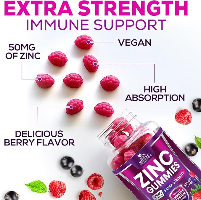 - Zinc Gummies for Adults: Each serving delivers 50mg of zinc, a key mineral that supports immune health and overall well being, making these zinc gummies a powerful daily supplement