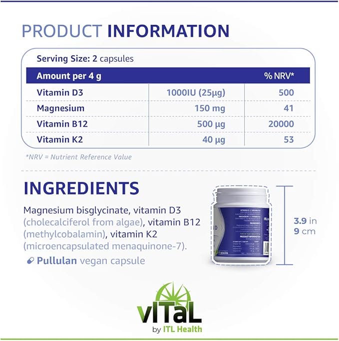 - PLANT-BASED FORMULA: Our premium vegan supplement contains Vitamin D3 derived from lichen, combined with Magnesium, B12, and K2 for optimal absorption and efficacy and catering to vegans