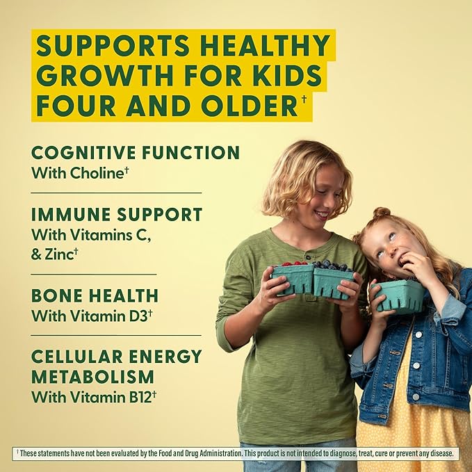 - Contains 19 essential vitamins & minerals to meet the nutritional needs of kids age 4+ for optimal growth and development, and to help fill diet gaps