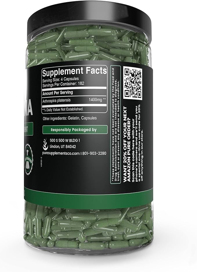 - Spirulina Capsules are filled with a single ingredient, providing a pure undiluted supplement