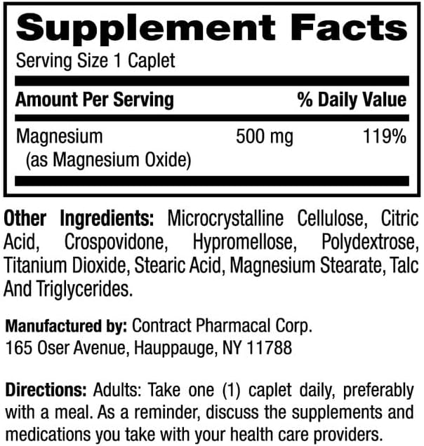 Earth's Splendor Bone & Muscle Dietary Magnesium Supplement for Men & Women, No Artificial Preservative or Flavor, Supports Bone & Muscle Health, Wheat Free (500mg, 100 Caplets)