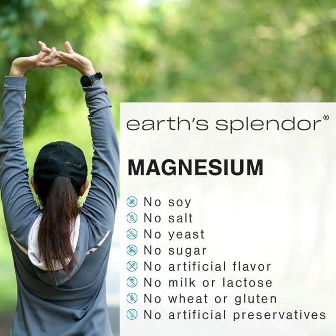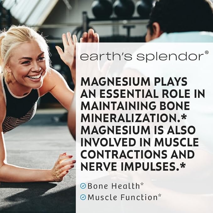 - Supports Muscle Function & Relaxation – Earth's Splendor Magnesium 500 mg aids muscle contraction, nerve impulses, and relaxation, promoting overall muscle and nerve health.
