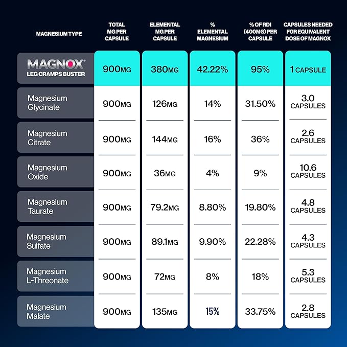 MAGNOX® Leg Cramps Buster | Magnesium Supplement for Muscle Cramps & Spasms | 380mg Magnesium for Leg Cramps at Night | 3X More Absorption | Dead Sea Minerals | Magnesium for Sleep&Muscle | 60 Caps