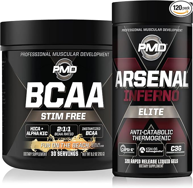 PMD Sports Arsenal X Inferno Superior Fast-Acting Liquid Gel Thermogenic Fat Burner (120 Liquid Gels) Sports BCAA for Recovery and Performance- Fun on The Beach (30 Servings)