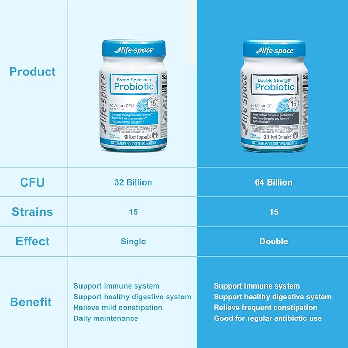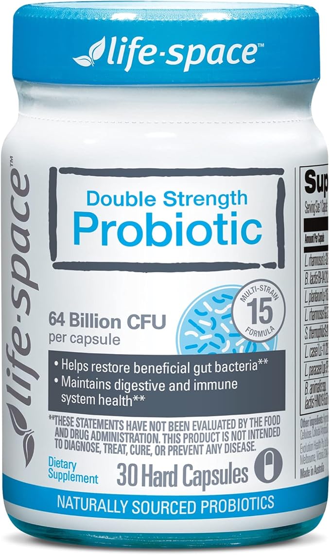 Life-Space Double Strength Broad Spectrum Probiotic, 64 Billion CFU & 15 Diverse Strains, Redouble Formulated for Digestive Health & Immune Health, Probiotics for Women & Men - 30 Veg Capsules