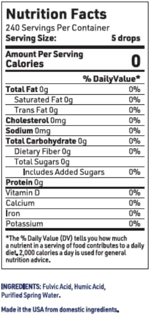- Primary Supplement Type : Fulvic Acid, Humic Acid