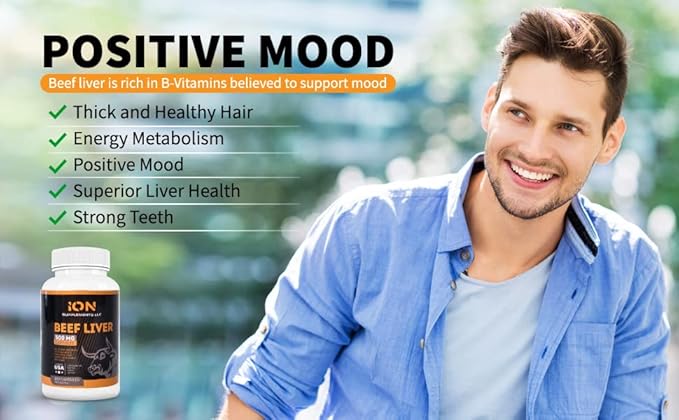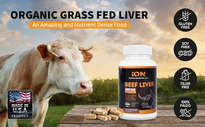 Grass Fed Organic Beef Liver (180 Caps) - Pasture-Raised - Iron, Vitamin A, B Vitamins, Collagen - Promotes Energy, Detoxification, Whole Body Wellness - Ancestral Paleo Living - by Ion Supplements