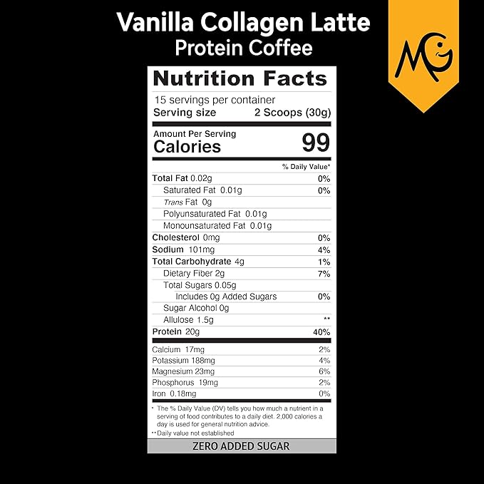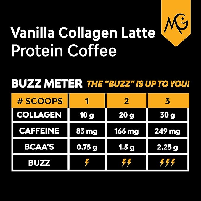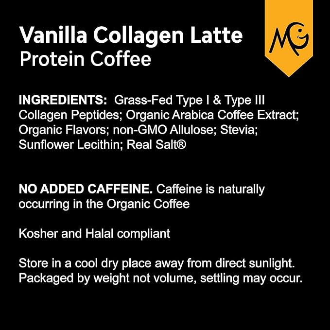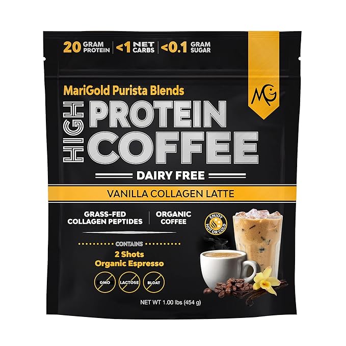 MariGold High Protein Collagen Coffee - Vanilla Collagen Latte, Dairy Free, 20g Grass-Fed Type I & III Collagen Peptides, Energy Boost, 2 Shots Organic Espresso, Non-GMO, 1 Lb Bag, 15 Servings