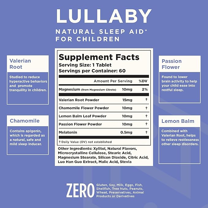 - NATURAL NIGHT'S REST: Trust in the quality of Nuvana Lullaby's all-natural ingredients. Our chewable tablets are vegan, gluten-free, and preservative-free, ensuring that you can give your child a safe and healthy sleep aid with confidence.