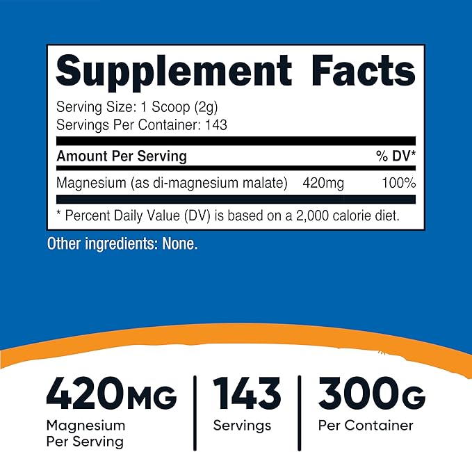 Nutricost Magnesium Malate Powder (300g) - 420mg of Magnesium Per Serving - Non-GMO, Gluten Free