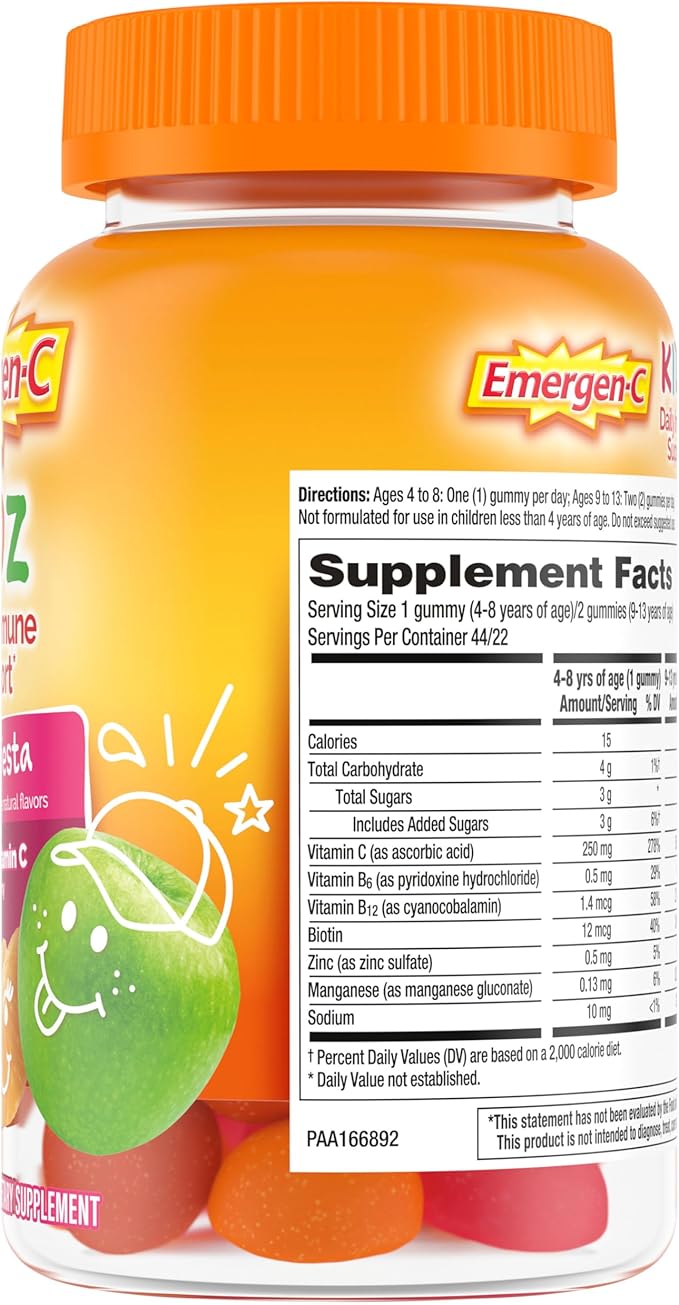 Emergen-C Kidz Daily Immune Support Dietary Supplements, Flavored Gummies with Vitamin C and B Vitamins, Fruit Fiesta Flavored Gummies - 44 Count