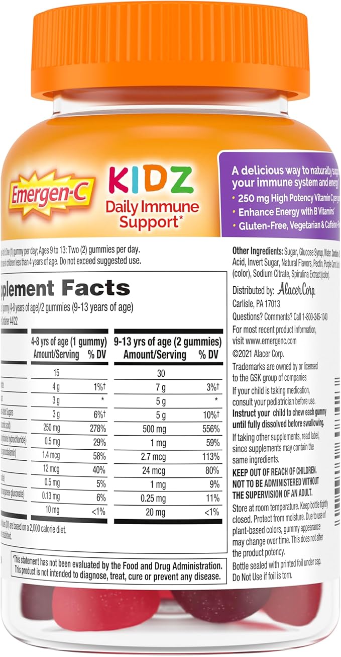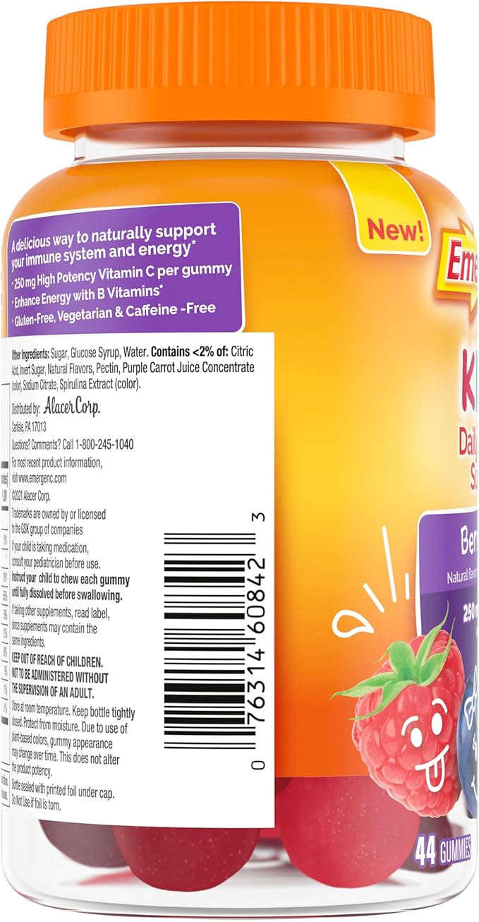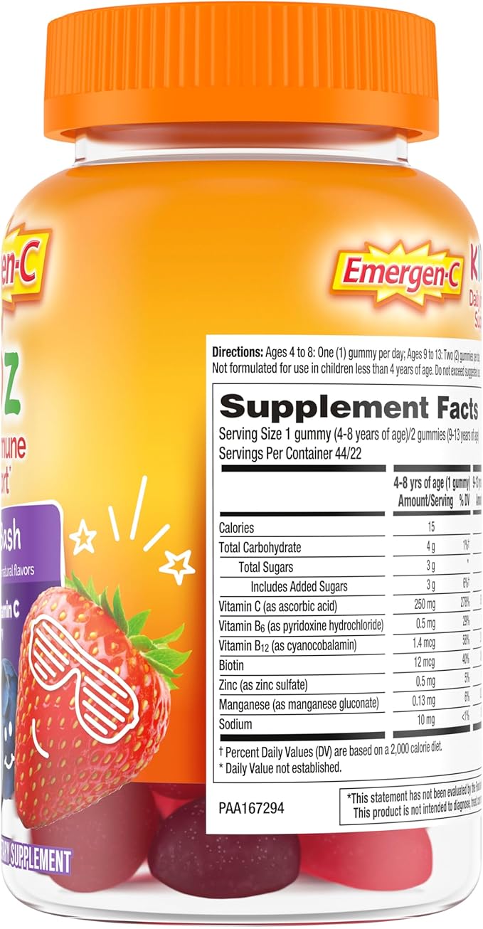Emergen-C Kidz Daily Immune Support Dietary Supplements, Flavored Gummies with Vitamin C and B Vitamins for Immune Support, Berry Bash - 44 Count