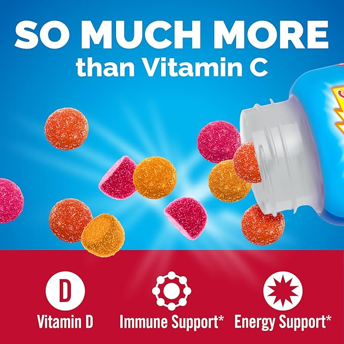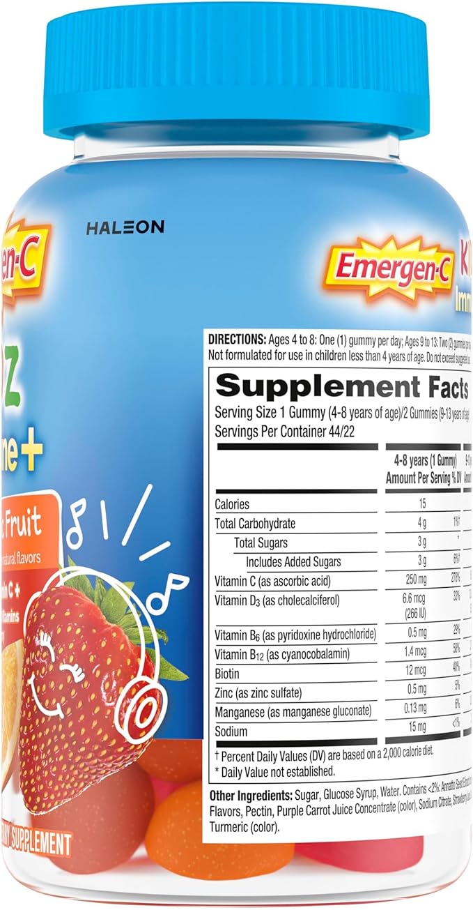 Emergen-C Kidz Immune+ Immune Support Dietary Supplements, Flavored Gummies with Vitamin C, B Vitamins and Vitamin D for Immune Support, Fun-Tastic Fruit Flavored Gummies - 44 Count