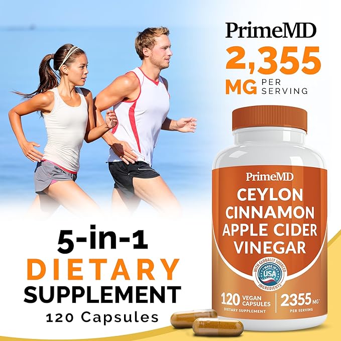 5-in-1 Ceylon Cinnamon Capsules 2355mg - Ceylon Cinnamon and Apple Cider Vinegar with Turmeric, Panax Ginseng, Cinnamon, and Bioperine, 120 ct