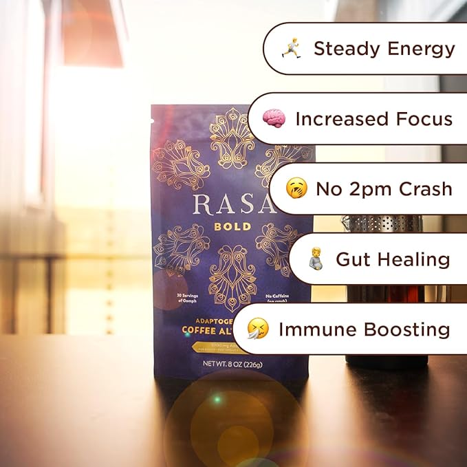Rasa Bold – Adaptogenic Mushroom Coffee Alternative | Vegan, Keto, Whole 30, Ayurveda Wellness Tonic with Lion's Mane, Rhodiola, +Cordyceps (8 oz / 30 Servings)