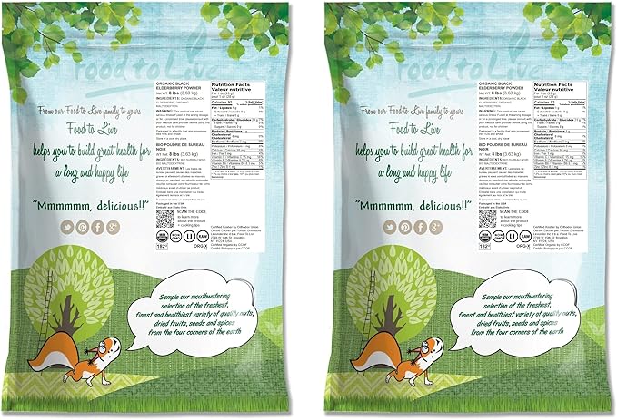 - ✔️ ORGANIC, NON-GMO, KOSHER & VEGAN: This Black Elderberry Powder by Food to Live is Organic, Non-GMO, Raw, Kosher, and Vegan. Besides, it is free of cholesterol and trans-fat.