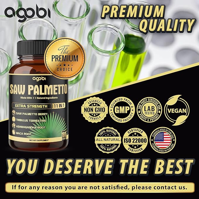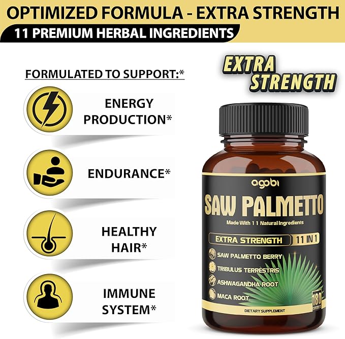 - 🌿 11in1 Extra Formula Booster with High Absorption Agobi Saw Palmetto Berries Supplement; Support optimal prostate, restful mood, immune system, and energy production for men & women.