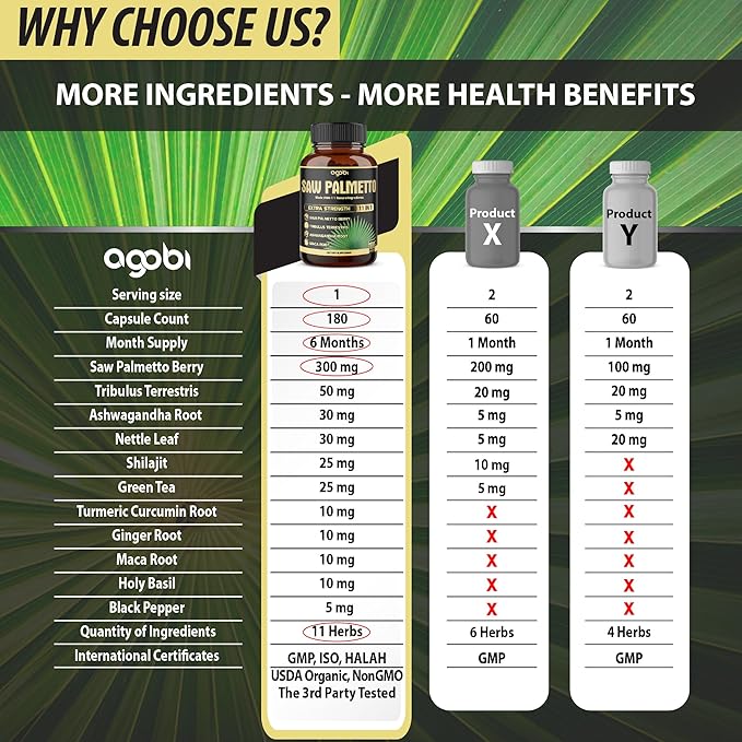 - 🌿 Herbal Saw Palmetto Complex maintains balance with exercise and a healthy lifestyle. Discover the benefits of Agobi Dietary Supplements for safe and healthy living.