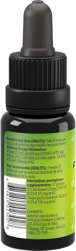 Activation Products - Perfect K2D3, Liquid Vitamin D3 with K2, Vitamin K2 and D3 Supplement in MCT Oil, D3K2 Vitamins for Bone Strength and Immune Support, D3+K2 Vitamins for Calcium Absorption, 15 ml
