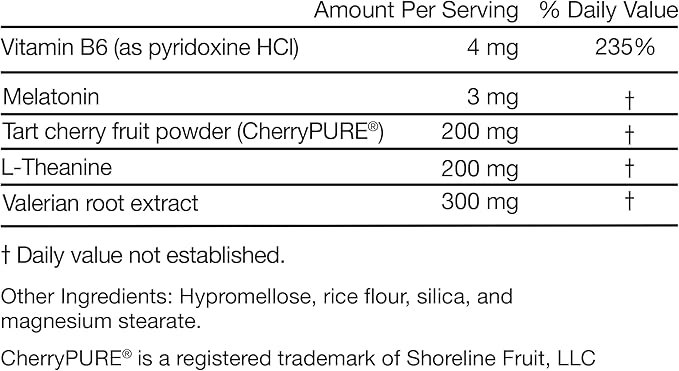 - Special Ingredients : Melatonin, Tart Cherry, L-Theanine, Valerian Root Extract