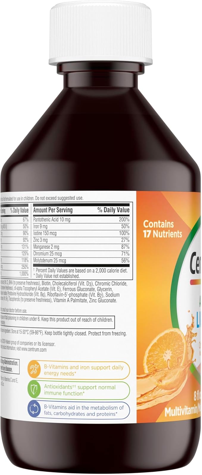 Centrum Liquid Multivitamin for Adults, Multivitamin/Multimineral Supplement with B Vitamins and Antioxidants, Citrus Flavor - 8 Fl Oz