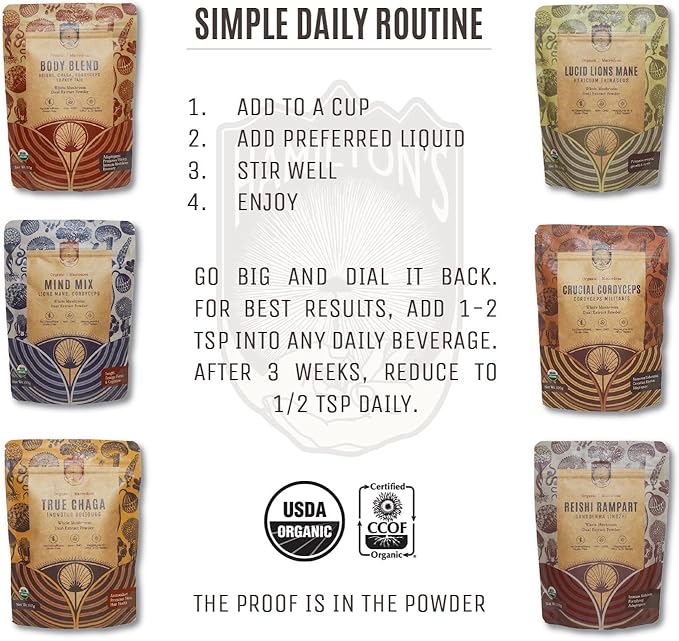 - No Fillers or Additives: Pure organic whole mushrooms with no fillers or grain.