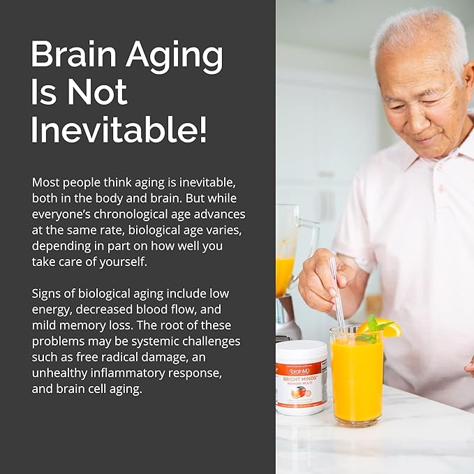 Dr Amen BrainMD Bright Minds Memory Multi, Orange Mango Flavor - 5.4 oz Powder - Multivitamin & Memory Support - Gluten Free, Sugar Free - 30 Servings