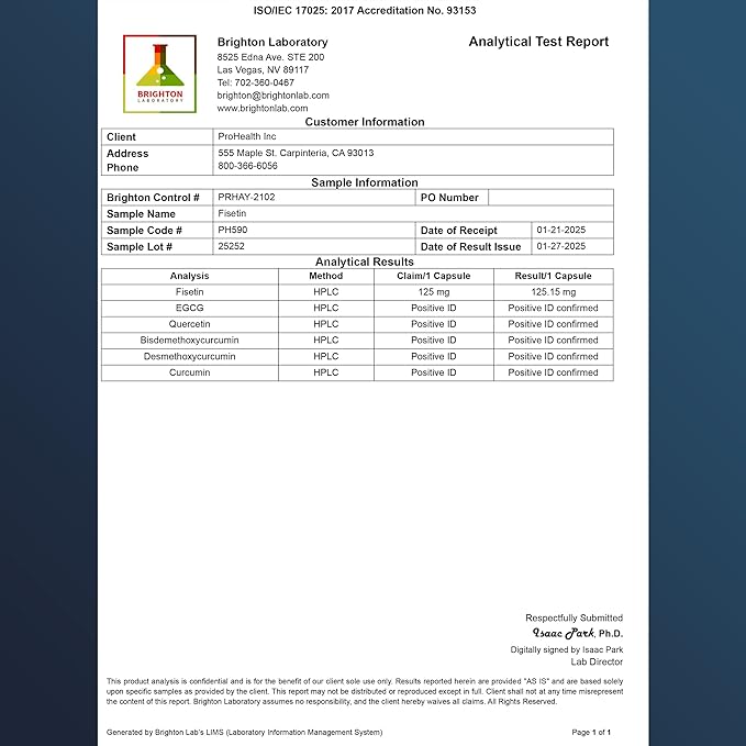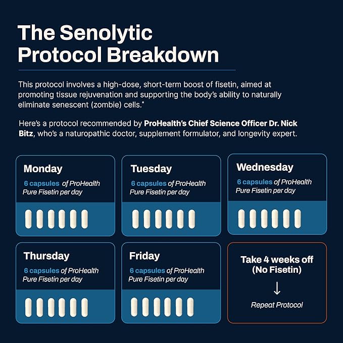 ProHealth Fisetin Supplements-15X Better Absorption from Polyphenol Blend + MCT Oil. 3rd Party Tested Pure. USA Manufactured. Powerful Antioxidant + Senolytic. Fisetin Supplement 125mg X 60 Servings