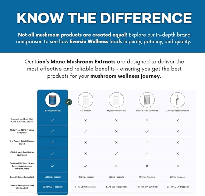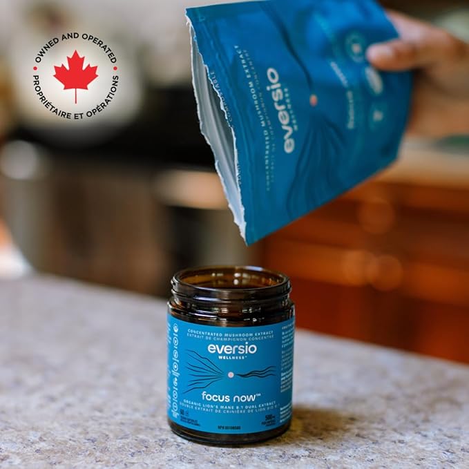 Eversio Wellness Organic Lion’s Mane Mushroom Supplement Focus Now - 8:1 Dual Extract, 500mg, 60 Vegan Capsules, >35% Beta-D-Glucans, Memory & Focus Support