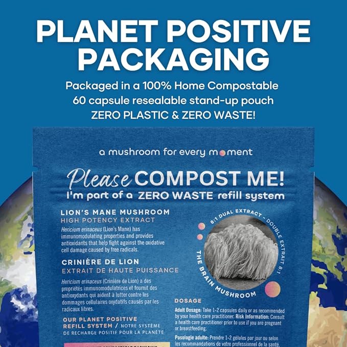 - PLANET POSITIVE REFILL SYSTEM - Packaged in a 60g glass jar with a metal lid, our blends offer 60 servings. When you need more, simply order a 100% home compostable 60g refill pouch. Refill, reuse, reduce, and repeat for zero plastic and zero waste!