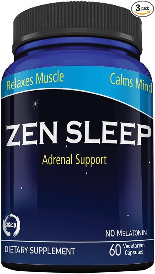 Zen Sleep | Non-Addictive Sleep Aid w/Adrenal Support. Contains Magnesium and Organic Herbs; Chamomile, Lemon Balm, Passion Flower, No melatonin