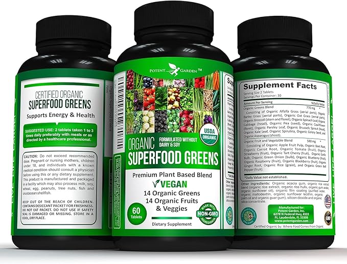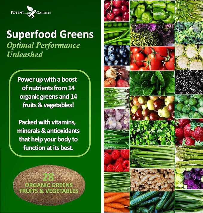 - Power-packed Superfood Blend: Potent Garden's Superfood Greens is an organic, plant-based supplement containing a potent blend of 28 greens, including nutrient-dense superfoods like spirulina, kale, broccoli, and spinach, providing a concentrated dose of antioxidants, vitamins, and minerals in one vegetable supplement.