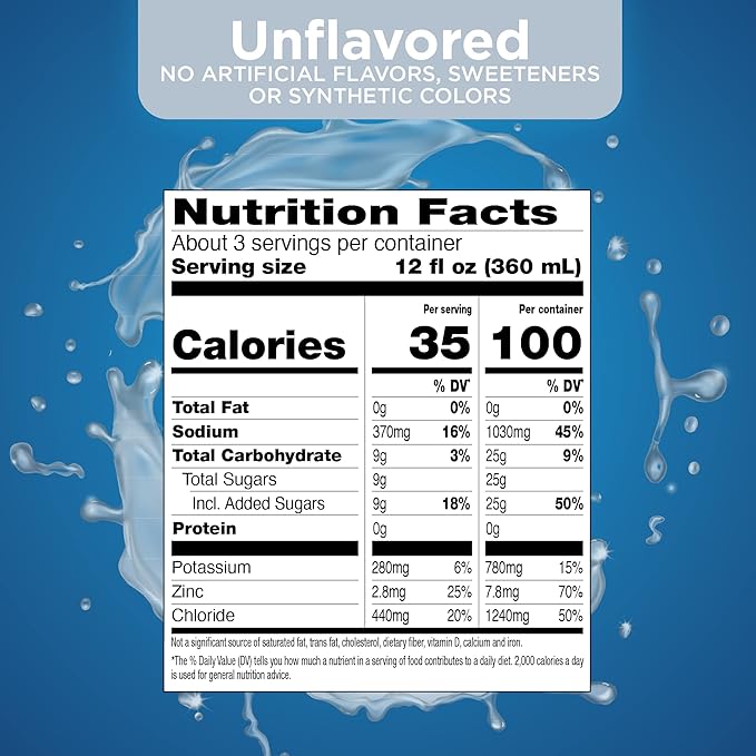 - QUICKLY REPLENISHES fluids, zinc and electrolytes; no artificial flavors, sweeteners or synthetic colors; unflavored and designed for fast, effective rehydration