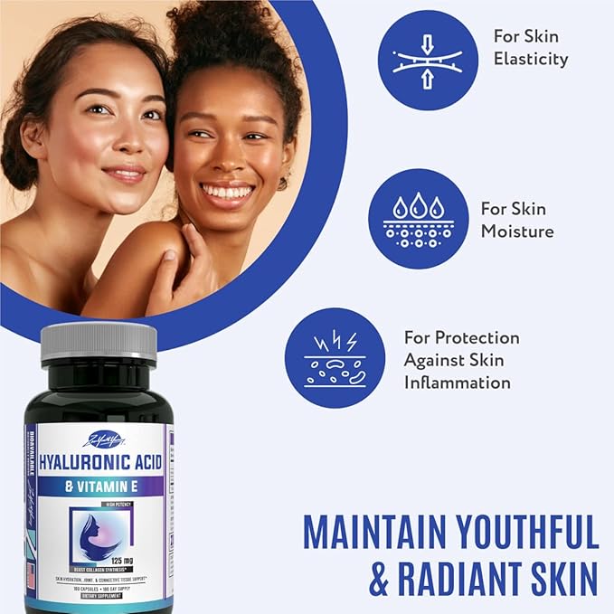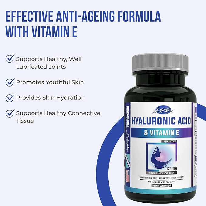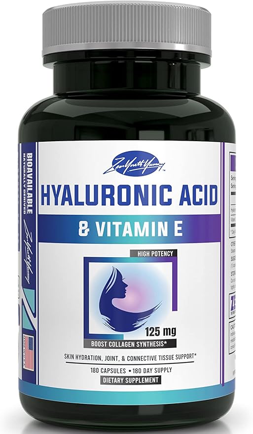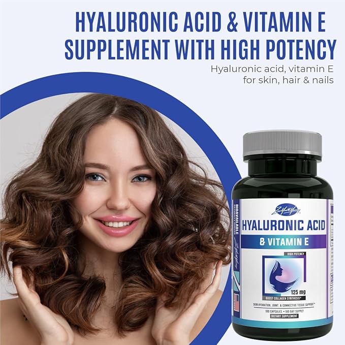 zyy Hyaluronic Acid Supplements with Vitamin E - Daily Anti Aging Beauty Supplement for Healthy Skin, Hair and Eyes, Supports Joint Lubrication & Immune System - No-GMO & Gluten-Free - 180 Capsules