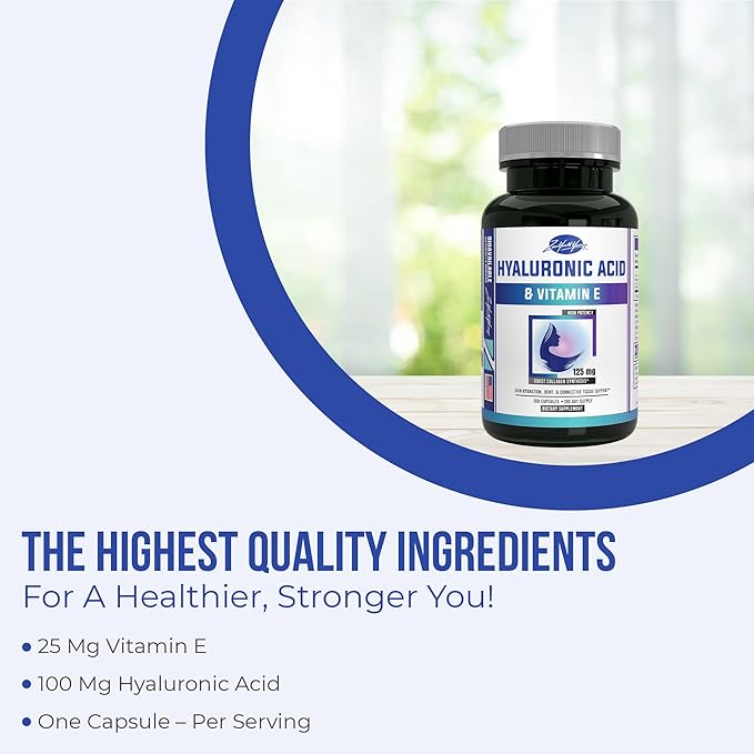 - Double Strength High Potency: Made with pure hyaluronic acid powder (fermented source), each serving provides 100 mg and 25 mg Vitamin E, which may gives it a boost to promote your full body wellness.