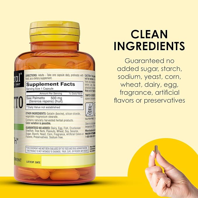 - PROSTATE HEALTH SUPPORT: Once-daily capsules with 500 mg of whole herb saw palmetto that may help support prostate health & function
