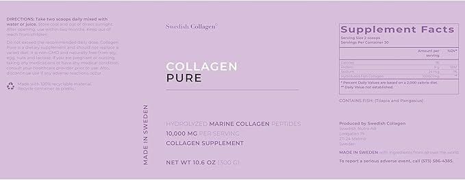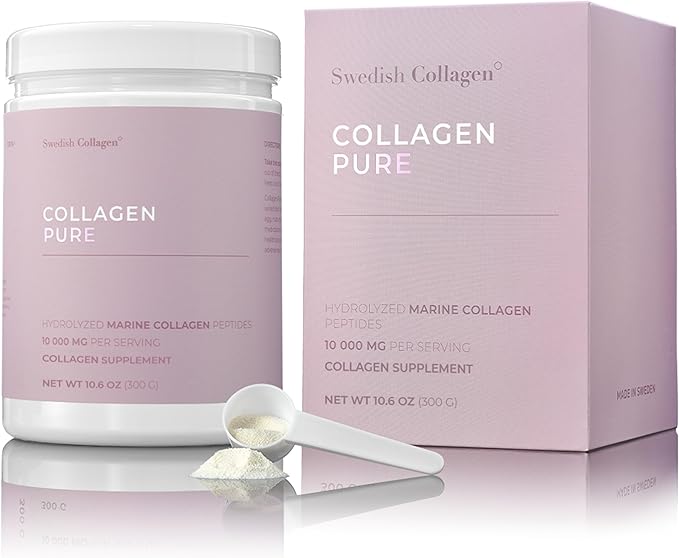 Swedish Collagen - Hydrolyzed Marine Collagen 10,000 mg Powder Supplement - Pack of 300 g, 30 Day Supply | Pure Peptide for Healthy Hair, Skin, Nails & Joints I 100% Natural & Gluten Free | Sugar-Free